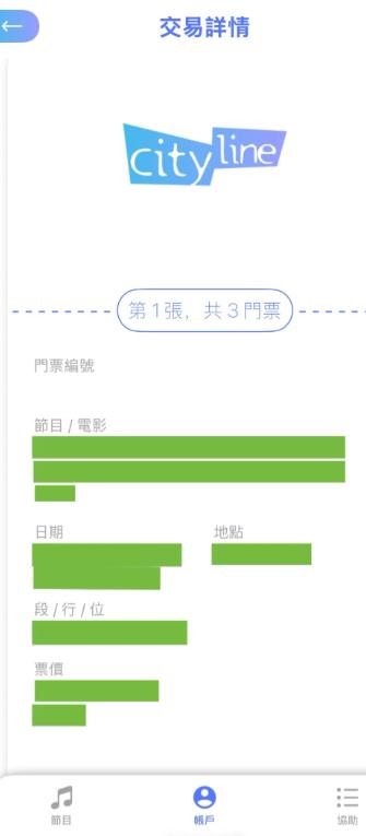 5. 如果你点的是购票列表的演唱会名字的话,就会出现交易详情,而不是取票二维码(图6)
