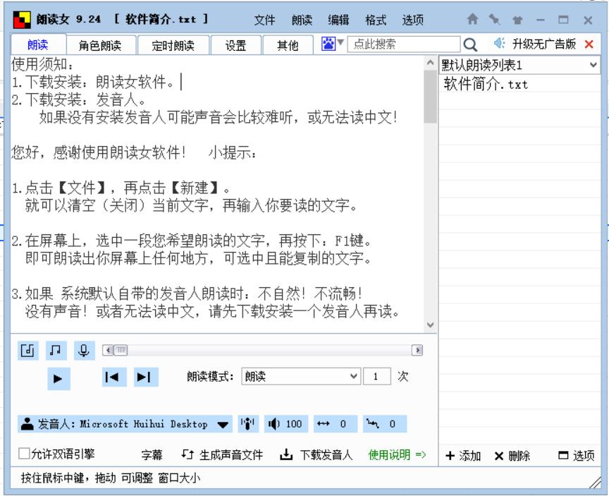 1、启动朗读女软件。