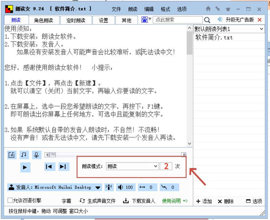 3、点击“朗读模式”修改次数。