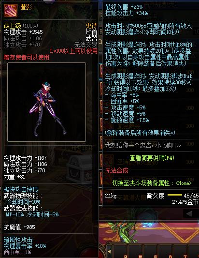DNF100版本将会在带来不少新内容,比如新的史诗武器。其中史诗匕首有2把,一把叫做匿影。那么作为新史诗武器,匿影适合哪些职业?下面就将带来DNF匿影适合职业介绍。