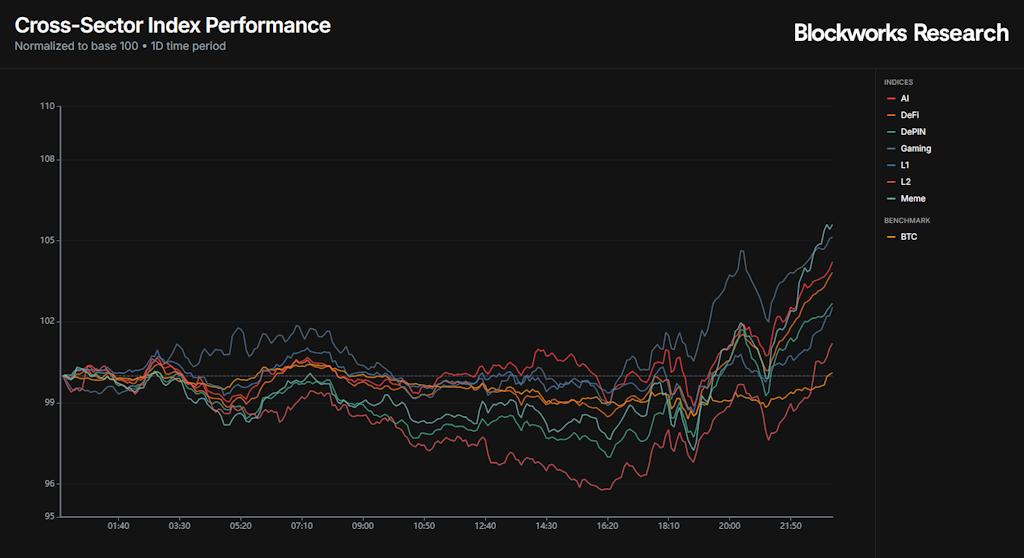 风险偏好随之飙升。表情包、人工智能和游戏成为过去24小时内表现最佳的三大板块,涨幅均超过比特币,并预示着资本将进一步向风险曲线下方流动。