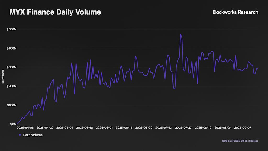 与许多其他类似加密货币一样,其涨势也十分剧烈。MYX 从 8 月份的 0.10 美元飙升至如今的 16.82 美元,涨幅达 168 倍。然而,自 5-6 月份首次飙升以来,其日交易量一直保持相对平稳。MYX 的未平仓合约(通常可以更好地衡量永续合约的实际活跃程度)仅为 180 万美元,而 Hyperliquid 的未平仓合约则高达 142 亿美元。换句话说,MYX 的交易价格是 Hyperliquid 的 3.3 倍,而未平仓合约却比 Hyperliquid 少 7,888 倍。