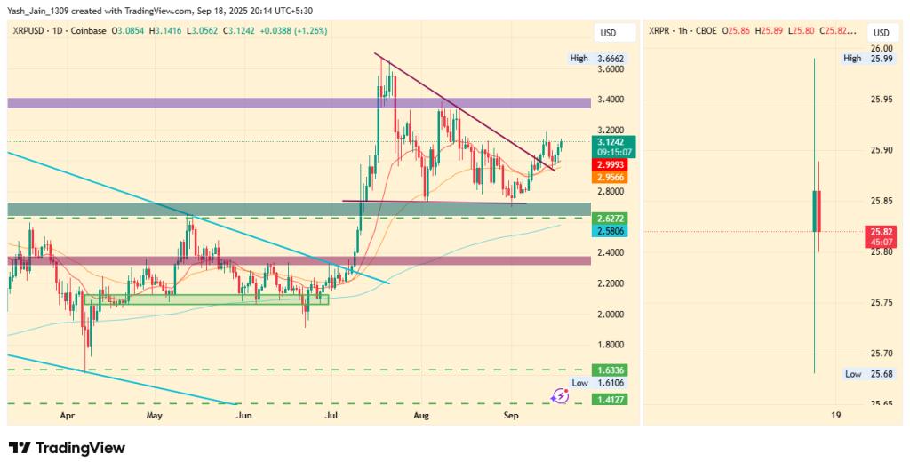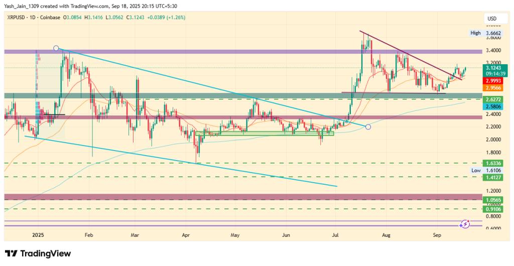 XRP价格在 ETF 批准和美联储降息的推动下达到 3.12 美元