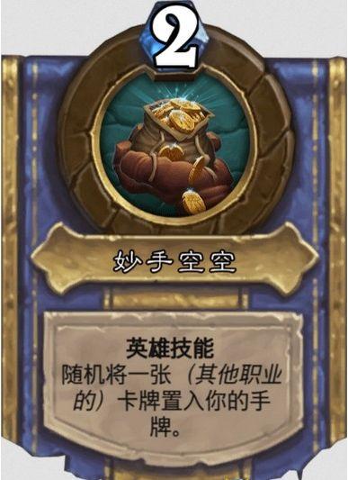 技能2妙手空空,2费,随机将一张其他职业的卡牌置入你的手牌,效果等同窃取。解锁条件:召唤25个海盗