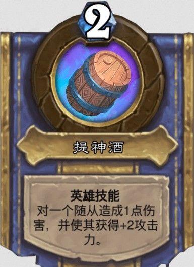 技能2提神酒,2费,对一个随从造成1点伤害,并使其获得+2攻击力,效果等同怒火中烧;解锁条件:伤害100个随从