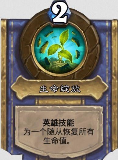 技能3生命绽放,2费,为一个随从恢复所有生命值。解锁条件:获得25点攻击力