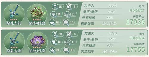当卡维使用【祭礼大剑】带“深林四件套”时,毕业条件为: