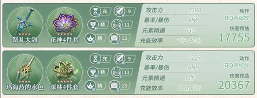 当卡维使用【玛海菈的水色】带“深林四件套”时,毕业条件为: