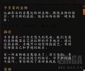 魔兽世界怀旧服Plus正式称谓为魔兽世界怀旧服探索赛季,属于怀旧服中的一个全新版本内容。有许许多多全新的玩法,内容提供给玩家们,那么有小伙伴好奇游戏中卡多雷的圣物任务怎么做,那么下面就来告诉大家。