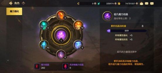 各项数值累积一定等级激活“超凡魔力结晶”属性,提升“所有属性强化”和“所有属性抗性”。如图: