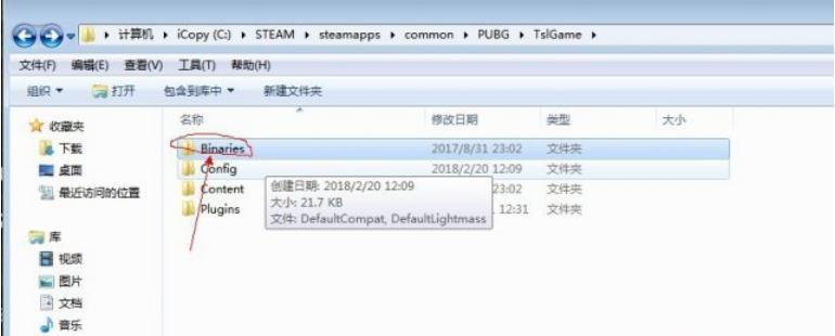 按早顺序打开游戏中的文件夹,先打开TslGame