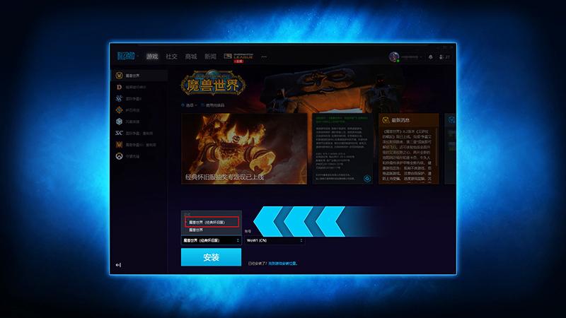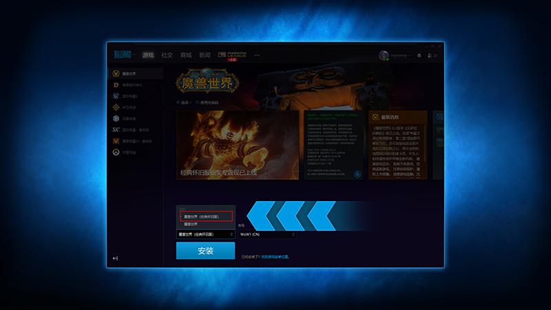 在菜单中选择“魔兽世界(经典怀旧服)”。点击安装按钮。