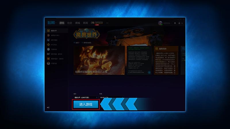 下载战网桌面应用,并使用战网通行证登录。在左侧菜单中选择《魔兽世界》。