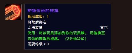 魔兽世界11.0里面有很多的全新内容,今天给大家带来的是游戏里面的炉铸传说的旌旗获得方法,这是游戏里面的玩具,那么下面就是相关的获得方法.