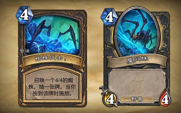 | 战吼:将三张伏击牌洗入你的牌库。当抽到伏击牌时,召唤一个4/4的蜘蛛 | ||