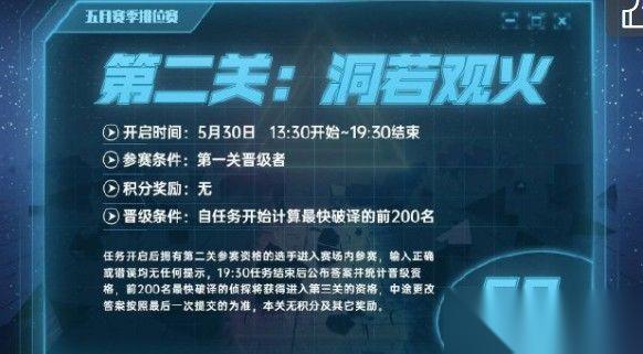 第二关情况5月30日继续,晋级者才能玩。这关要求更快,前200名进第三关,但没积分奖励。玩法类似急速破译,九宫格那种,得练练手速。