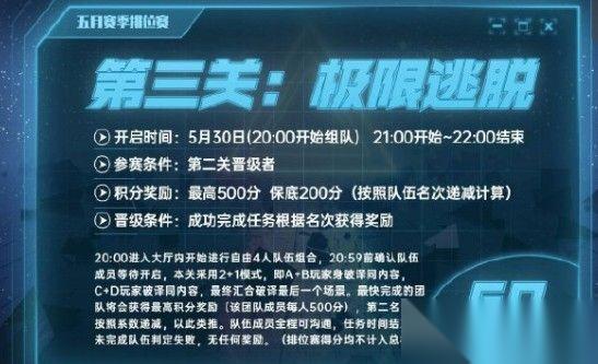第三关玩法1. 20点前进大厅组队,别拖2. A+B一组,C+D一组,最后汇合3. 排位赛分数不计入总榜