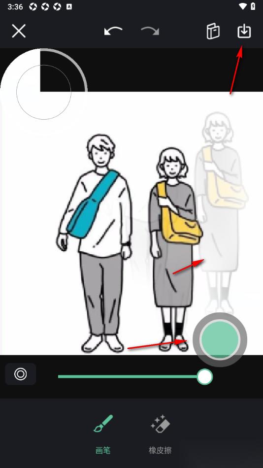 4.在弹出的页面上,用户需要将原本的红色光圈点击变成绿色光圈后,涂抹需要克隆的人物即可在旁边显示出克隆的人物。