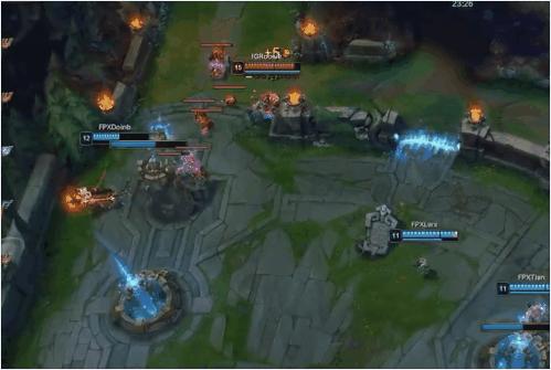 解析:这是飞机的持续伤害技巧,不断地使用R技能配合普攻来触发我们的耀光,不断的刷新我们普攻伤害来达到团战的最大输出。