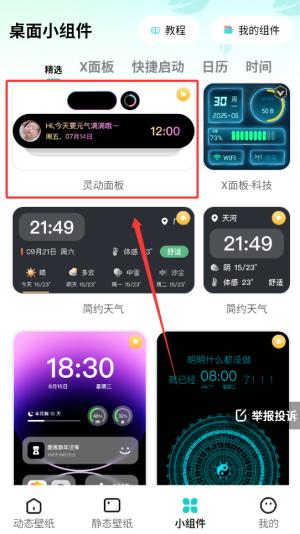 2、进入后可以看到各种实用小组件,比如动态天气、精美时钟、快捷开关等。