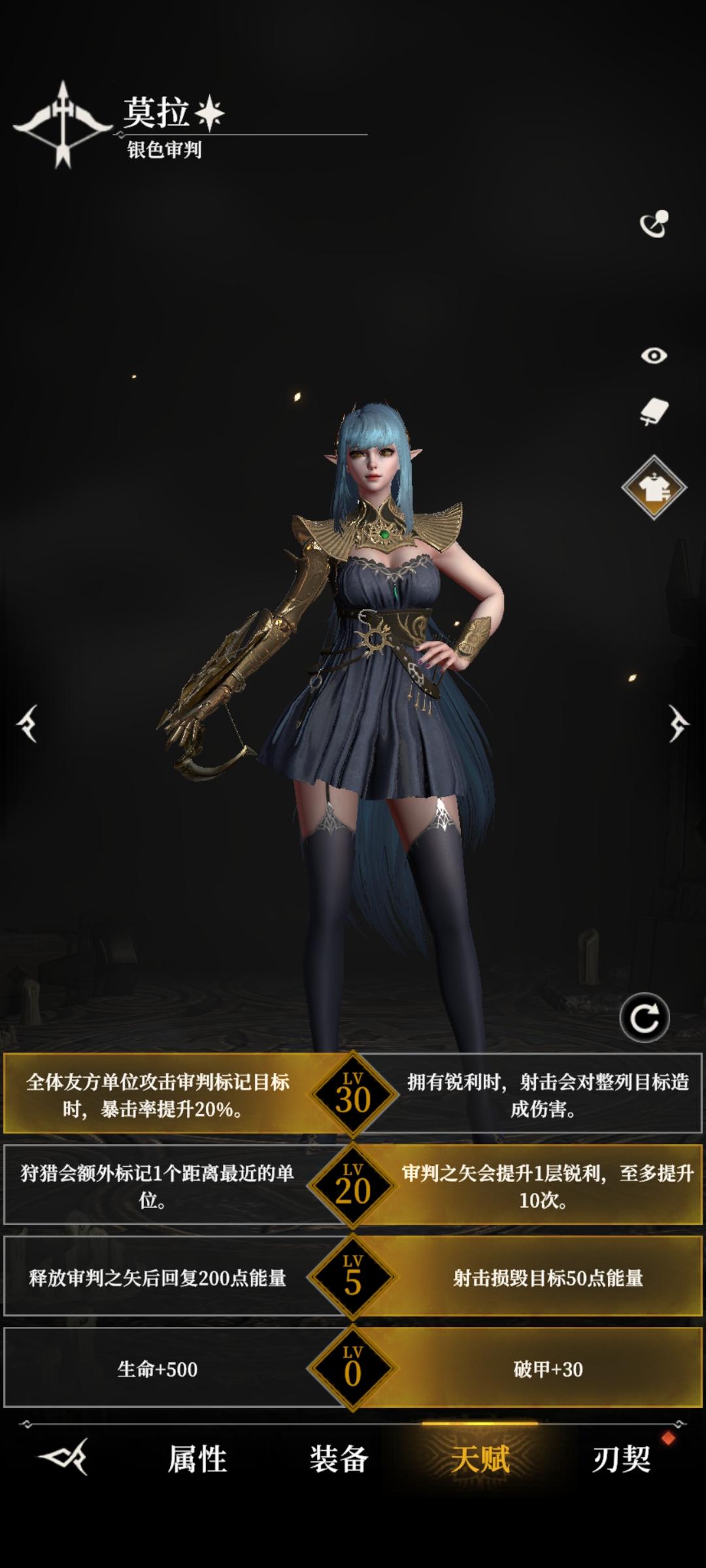 常规输出,右边的五级天赋和独特的减伤机制使她成为推图爬塔的好手。20级左边天赋的减伤和菲欧娜一样,只有在一些特殊boss使用。30级天赋右边打群体,左边打boss。