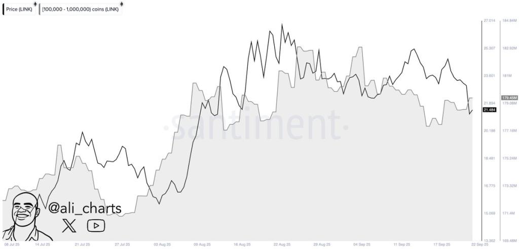 Chainlink (LINK) 继续吸引鲸鱼,超过最近购买了 800,000 个 LINK550 万个 LINK 已从交易所下架。这表明机构对 Chainlink 实现 DeFi 长期增长的信心。