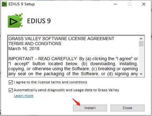 2、首先双击运行"EDIUS_Setup-9.20.3340.exe"程序,勾选软件协议,点击Install进行安装;