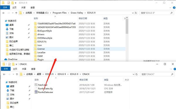 5、将Crack文件夹中的Patch.bat程序以管理员身份运行,这样即可完美删除安装包内的EDIUS 9文件夹;