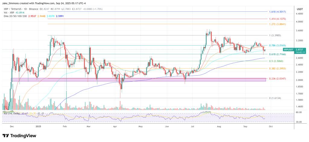 截至发稿时,XRP 交易价格为 2.87 美元。