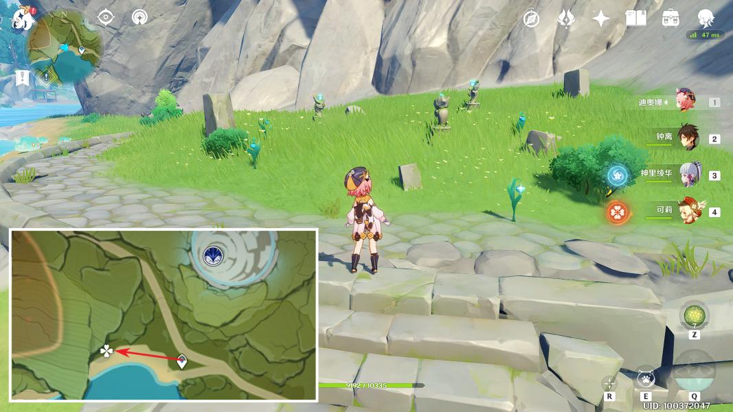 (2)位于蒙德,建议在队伍中加入可莉,天赋可以标记特产位置
