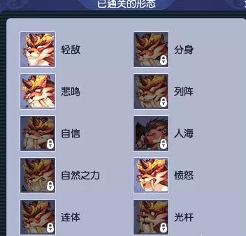 以梼杌为例,怪物战斗形态一共10种,轻敌、分身、悲鸣、列阵、自信、人海、自然之力、愤怒、连体、光杆。