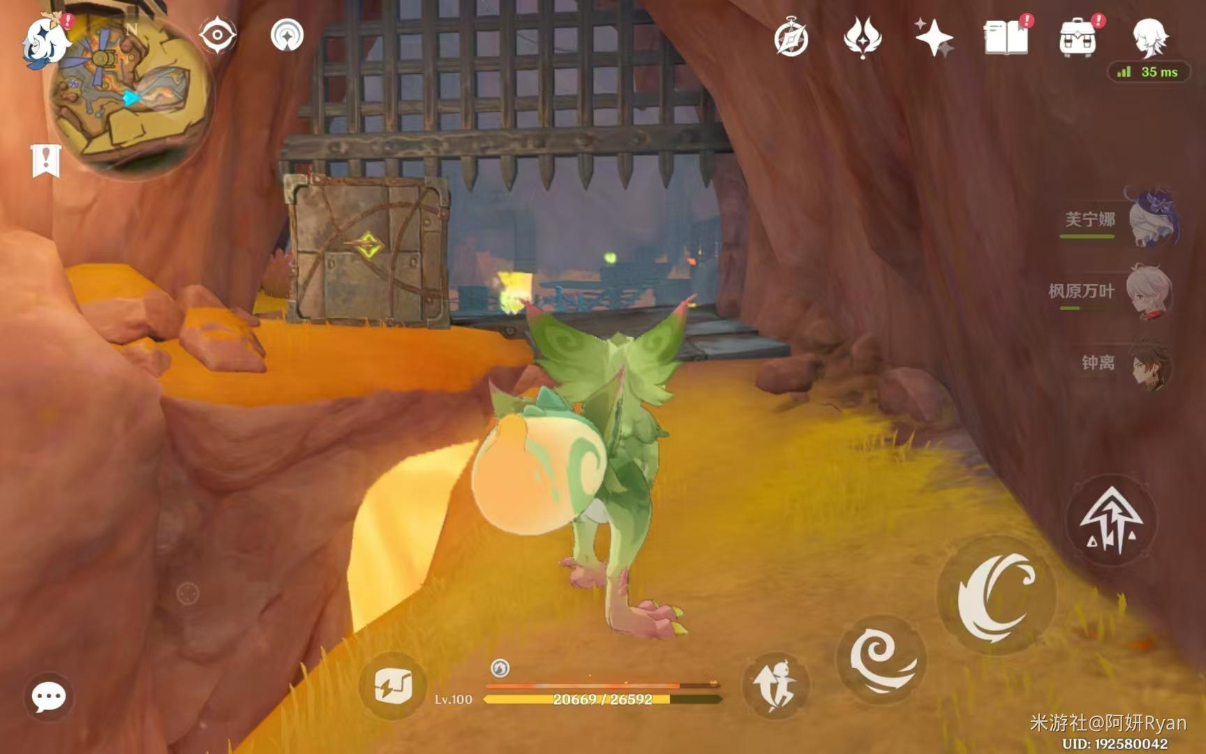 相信旅行者们已经来到了这一步!此时这里会有一只小龙潜在地下拱来拱去,我们追上他点击“追上你啦”,附身于他便可以解开锁扣
