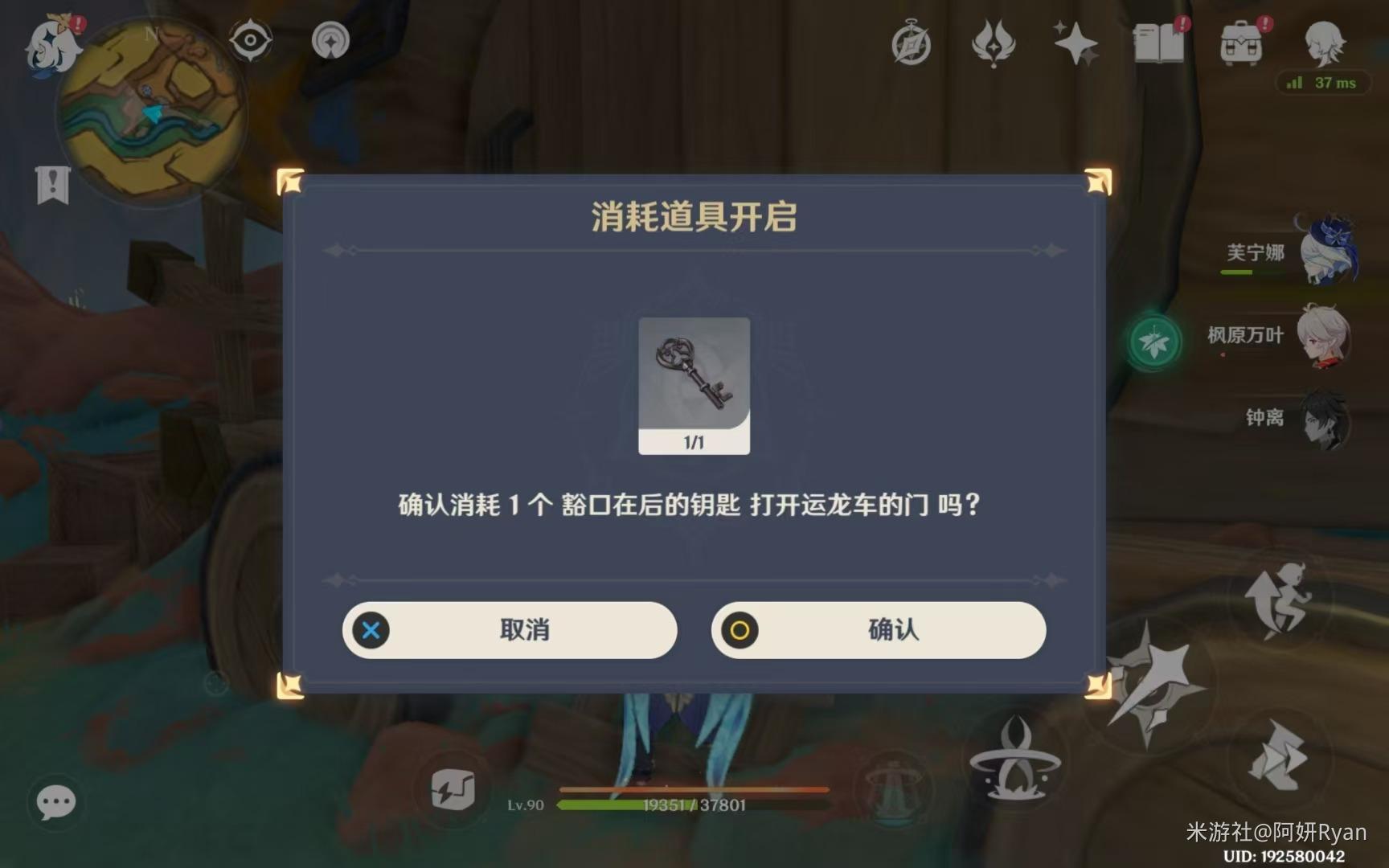 最后关闭机关,水珠全放上去旋转180º,就会出现愚人众,打个一分钟架,最后出现华丽宝箱,注意有个钥匙是领完这个宝箱才有的,车在拿第二颗水珠的那里