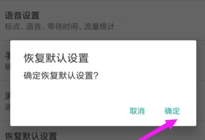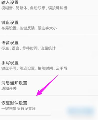 4. 进入输入法设置页面后,找到并点击“恢复默认设置”。