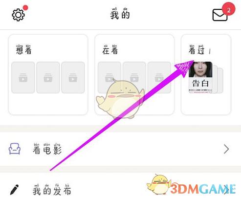 1、打开豆瓣APP,点击个人中心的【看过】按钮。