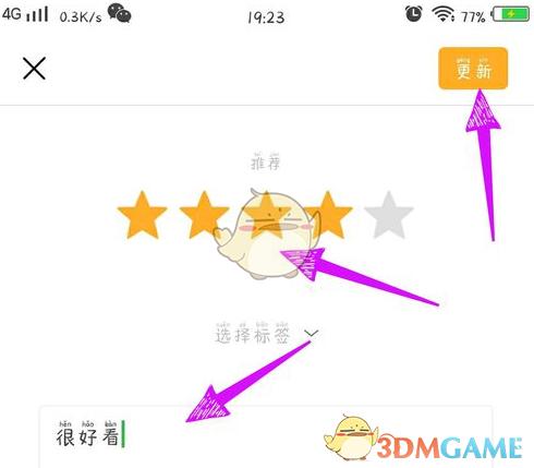3、对影视评分,然后写下我们的评价,点击【更新】,就可以发布短评了。