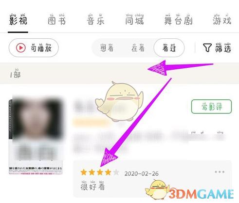 2、在看过中可以对已经看过的影视【写短评】。