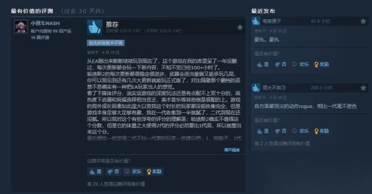 也许是得益于正式版的发售,截止发稿前,Steam近期评测为好评如潮,好评率高达97%,好评数从9月25日开始激增。
