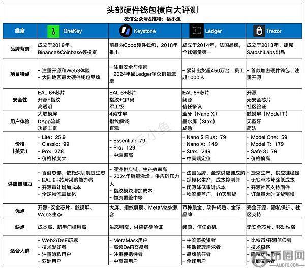 Onekey还有一个非常大的优势在于安全芯片+全开源,要知道Ledger的核心固件是闭源的,而Trezor没有安全芯片,因此,OneKey在硬件安全性层面还是领先的。