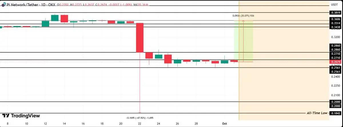 在一场以人工智能为主题的重要主题演讲后,PI 的交易价格为 0.2711 美元,成交量攀升 43%。Pi Network 的价格预测取决于能否守住 0.1851 美元上方的支撑位,并突破 0.40-0.45 美元的阻力位。看涨反转可能推动 PI 跌向 0.66 美元甚至 0.81 美元,而进一步的抛售则可能拖累其进一步下跌。