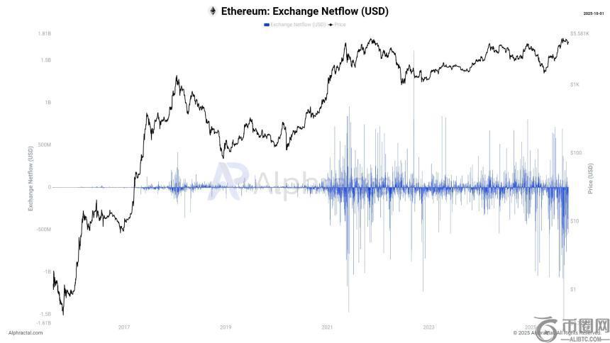 负值数据表明,买家(包括机构和散户)将 ETH 转入自托管或其他持有结构的速度超过了交易所吸收新存款的速度。Alphractal 将此描述为“以太坊历史上最强劲的做市兴趣”,暗示投资者的信心正在增强。