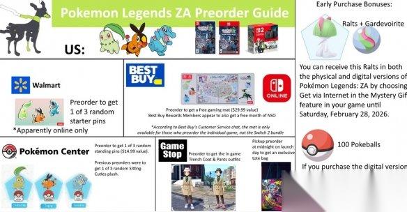 目前已知“携带沙奈朵进化石的拉鲁拉丝”是所有预购玩家都能获得的保底奖励。如果你追求实体赠品,则需要密切关注不同零售商的独家福利及其地区限制,数字版额外的100个精灵球也是不错的。
