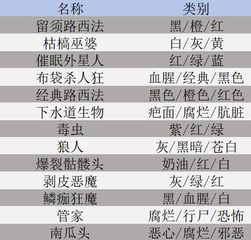 本次回归以及新增的怪物面具清单: