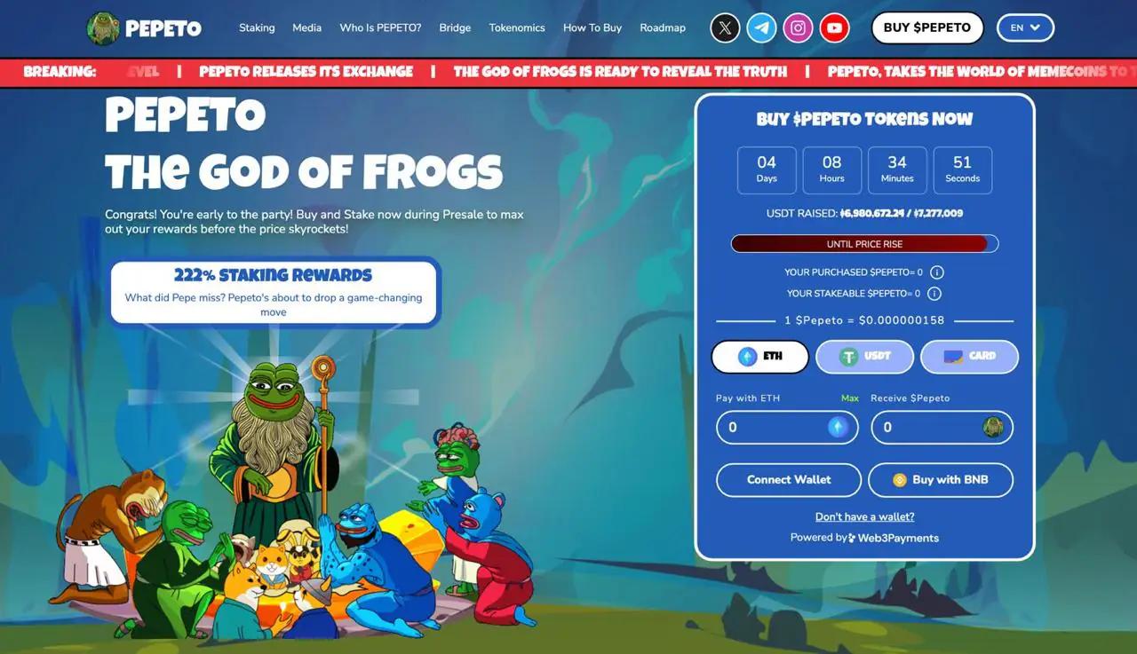 然而,尽管这些举措都侧重于机构和基础设施,但更激烈的讨论却集中在Pepeto(PEPETO)是一个 meme 原生项目,预售已筹集超过 690 万美元。其价格仅为 0.000000158 美元,质押