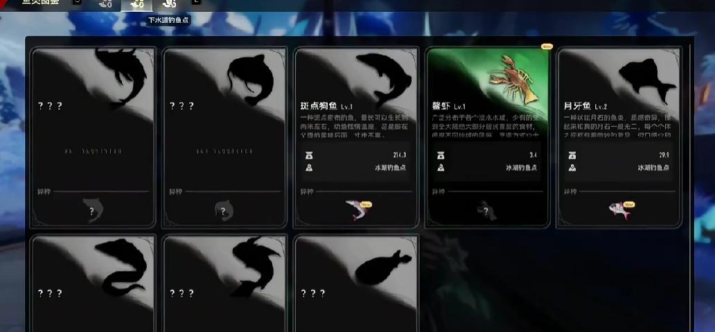 除了深海水域以外,大家若是想要钓到其他鱼类品种的话,建议大家可以看看游戏中的鱼类图鉴,在鱼类图鉴里面都会给玩家详细的记录了每一种鱼所生活的水域,大家只要根据图鉴内容去对应的水域钓就可以了,此外,可能绝大多数玩家在钓鱼时经常会出现空军的情况把,若是遇到这种情况,建议大家换个地方,比如说冰湖城或者是下水道等地方都可以尝试下。