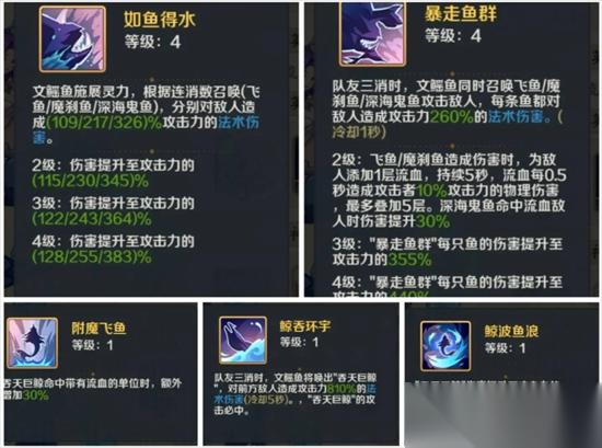 文鳐:副C+持续伤害制造机,鱼群+流血叠层+大招鲸鱼,能在队友三消时疯狂输出。