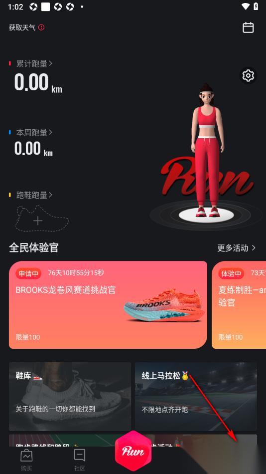 1.来到当前打开的悦跑圈app中,在页面下方的位置选择我的选项,将其点击一下即可进入。