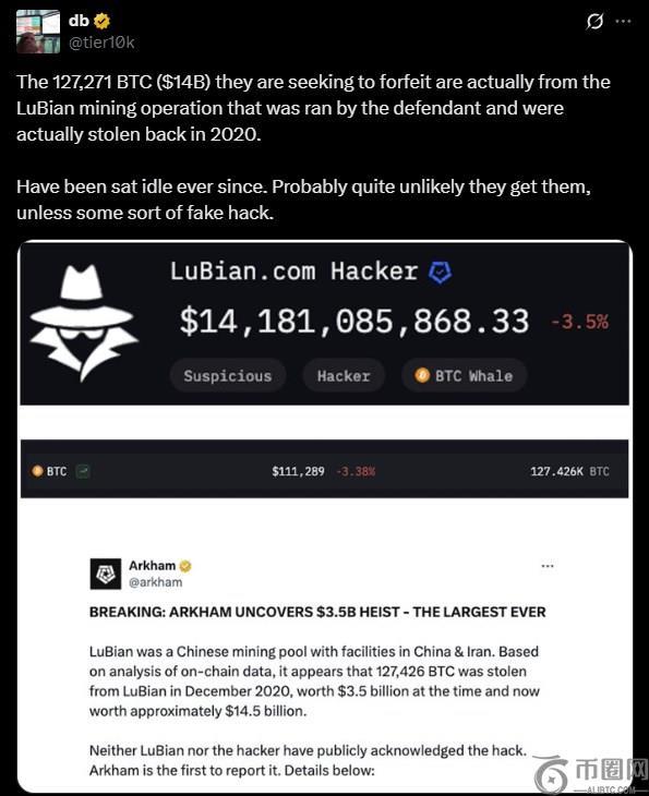 最初的 10月14日报道有消息称,这 127,271 个 BTC 源自陈志经营的 LuBian 挖矿业务,并于 2020 年被盗。