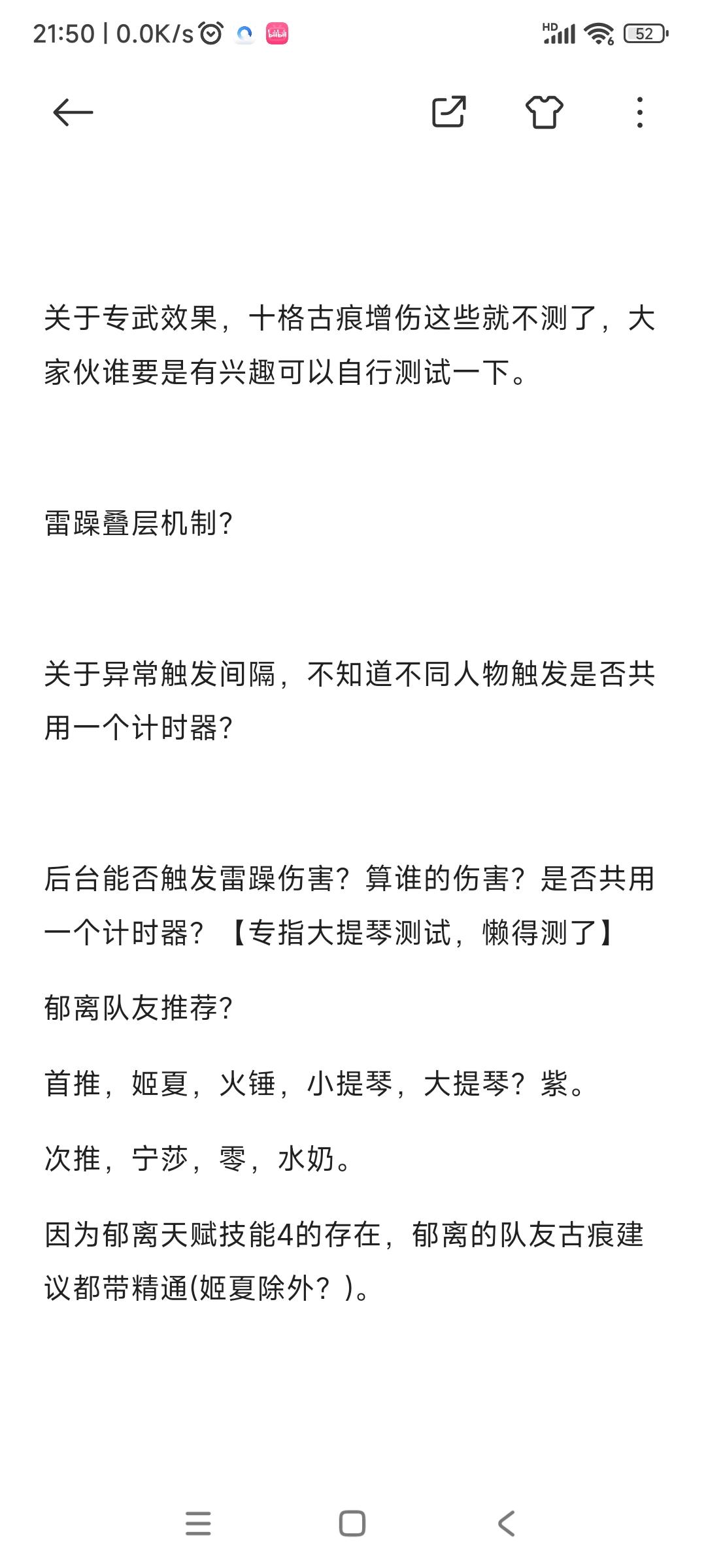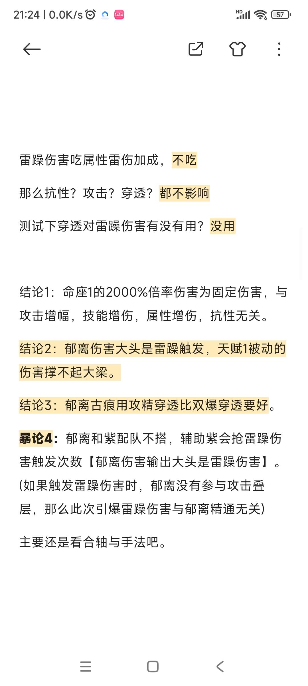2.郁离命座1的伤害为固定伤害,蚊子腿。而且郁离直伤伤害占比低[高命不清楚],古痕建议攻精穿透。