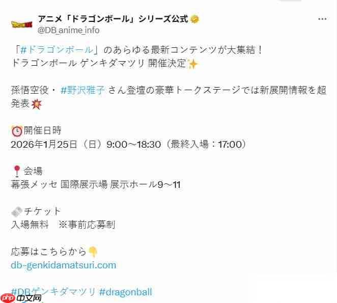 这场盛大的发布会将在日本千叶县的幕张展览馆举行,届时将带来多项重磅消息、专题讨论及精彩活动。活动由人气声优野泽雅子(孙悟空的配音演员)、执行制作人伊予昭夫,以及著名作曲家影山博信共同主持。影山博信曾为《龙珠Z》等经典动画创作了诸如Cha-La-Head-Cha-la和We Gotta Power等脍炙人口的主题曲,是系列音乐的灵魂人物。